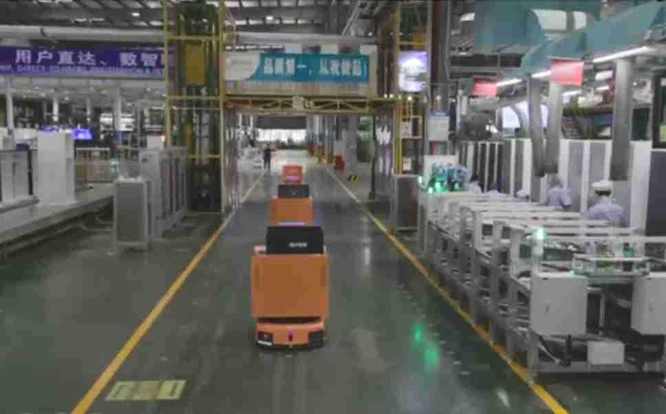 为车载冰箱物流配送打造的智能解决方案,,,,包含产中物流通过潜伏举升AMR搬运至线边,,,,产后成品物流智能仓储,,,流程包含产中物流智能齐套入库,,线边安灯叫料AMR智能配送至线边,,成品入库、、、、出库,,,通过无人堆高车机器人,,,,智能仓储管理替代人工作业管理,,实现更高存储、、更高效率、、、更具柔性化的解决方案。。。。